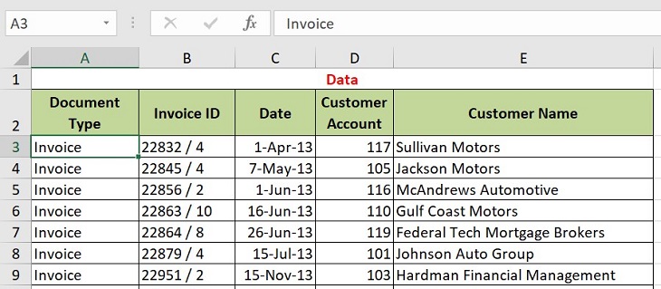 Ví dụ, để cố định 2 dòng đầu trong bảng bên dưới, bạn cần chọn vào ô A3.