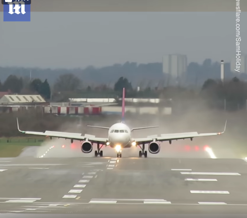 Xem cảnh máy bay hạ cánh trong điều kiện có gió lớn ở...